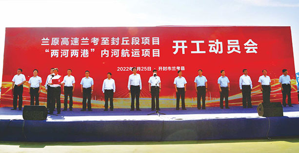 2022年6月25日上午9點(diǎn),蘭原高速蘭考至封丘段、“兩河兩港”內(nèi)河航運(yùn)等7個基礎(chǔ)設(shè)施項(xiàng)目集中開工動員會主會場在蘭原高速蘭考至封丘段項(xiàng)目建設(shè)工程施工現(xiàn)場拉開帷幕。