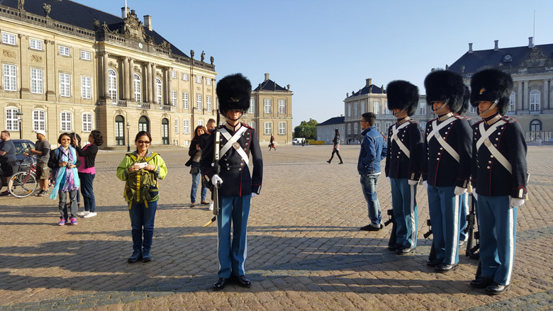 丹麥皇家衛(wèi)兵列隊(duì)換崗,別看高聳的皮毛帽子,在夏季據(jù)說具有移動(dòng)新風(fēng)功能(隱蔽內(nèi)置風(fēng)扇)