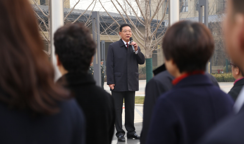 上午八點半,伴隨著莊嚴(yán)神圣的升旗儀式,盛大的喬遷典禮正式拉開帷幕,鴻寶集團黨委書記鄧和平主持了慶典儀式,鴻寶集團總裁在升旗儀式結(jié)束后的講話中,回顧了鴻寶集團24年發(fā)展的歷程,表達了對鴻寶集團未來發(fā)展的信心與期待。隨后,董事長發(fā)表了熱情洋溢的講話。在講話中,董事長把新辦公樓入駐比做“上樓趕考”,要求鴻寶人要坐得穩(wěn)、坐得住,以此次新辦公樓搬遷為新的起點,團結(jié)一致,開拓創(chuàng)新,取得更加輝煌的成績。