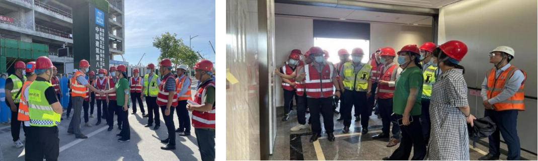 當(dāng)天下午,曉曦總接待了浙江亞廈裝飾股份有限公司董事長(zhǎng)丁澤成一行,對(duì)總部項(xiàng)目已施工完成的一層大堂、負(fù)一層電梯前室、三層公區(qū)精裝樣板區(qū)、景觀鋪裝樣板及外幕墻視覺模型進(jìn)行查看,并聽取了精裝樣板的施工情況。