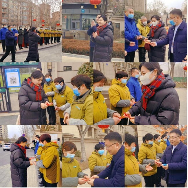 2023 年 1 月 21 日下午,鴻寶集團(tuán)總裁袁曉曦前往鴻寶物業(yè)所轄園區(qū)各項(xiàng)目對(duì)春節(jié)依然堅(jiān)守在崗的一線員工進(jìn)行親切慰問,鴻寶物業(yè)總經(jīng)理鄭偉鵬、總經(jīng)辦主任王艷棟全程陪同,并送上暖心慰問禮品及彩頭紅包,向大家致以新春的問候及祝福。