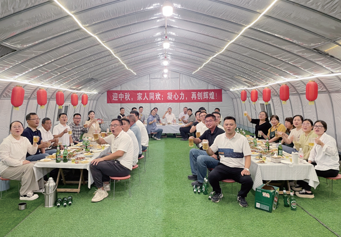 9月13日晚,項目公司舉辦中秋家宴,與全體員工共享佳節(jié)歡愉?;顒蝇F(xiàn)場掛滿了五彩斑斕的燈籠,每個燈籠下都懸掛著一條精心準備的燈謎。員工們積極參與,競相猜出謎底,猜中謎底的員工還獲得了公司準備的小禮品。猜燈謎結束后,項目公司精心準備了豐盛佳肴,大家圍坐一堂,品嘗美食,暢談家常,分享兒時中秋趣事,比賽成語接龍,共同感受這份團圓與溫馨。