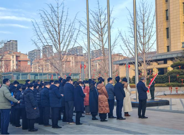 隨后,集團(tuán)公司舉行春節(jié)后首次升國(guó)旗儀式,總裁袁曉曦發(fā)表國(guó)旗下講話。
