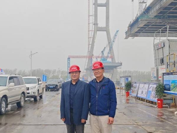 袁董事長一行先后前往蘭封高速項(xiàng)目路基工區(qū)、二工區(qū)水穩(wěn)試驗(yàn)段、黃河大橋主橋 88#墩及服務(wù)區(qū)綜合樓施工現(xiàn)場調(diào)研。袁董事長認(rèn)真查看工程進(jìn)展,與現(xiàn)場工作人員深入交流,詳細(xì)了解施工工序、質(zhì)量管控及安全保障措施的落實(shí)情況。在施工現(xiàn)場,袁董事長對(duì)項(xiàng)目當(dāng)前的施工進(jìn)度和過硬的工程質(zhì)量予以充分肯定,并特別叮囑現(xiàn)場工作人員務(wù)必時(shí)刻繃緊安全生產(chǎn)弦,嚴(yán)把質(zhì)量關(guān),在確保質(zhì)量、安全的前提下穩(wěn)步推進(jìn)工程建設(shè)。